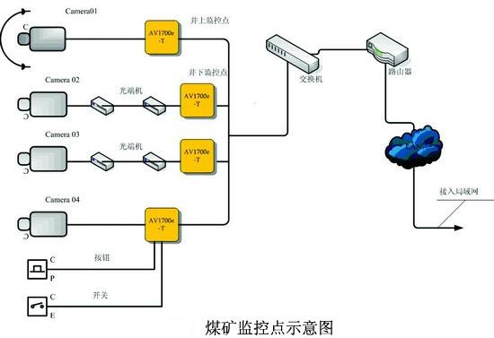 煤礦工業(yè)長(zhǎng)期停留在人工開采水平,生產(chǎn)效率低,安全隱患多,如“瓦斯爆炸、地下滲水等事故經(jīng)常發(fā)生。因此使用放入防爆箱內(nèi)的金視博光端機(jī)將井下的視頻、數(shù)據(jù)等信號(hào)通過(guò)光纖傳輸?shù)降孛姘踩O(jiān)控中心。監(jiān)控中心的工作人員利用此遠(yuǎn)程監(jiān)控系統(tǒng)就可以直接對(duì)井下情況進(jìn)行實(shí)時(shí)監(jiān)控。華創(chuàng)視通生產(chǎn)的光端機(jī)通過(guò)一芯光纖傳輸多路數(shù)字非壓縮視頻、100M以太網(wǎng)信號(hào)、多路電話信號(hào)、多路控制數(shù)據(jù)信號(hào)和多路報(bào)警信號(hào),非常適用于煤礦安全監(jiān)控系統(tǒng)。