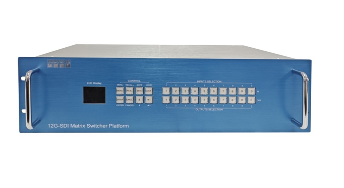 12G-SDI 48x48 矩陣切換器可將多臺SDI攝像機、SDI監(jiān)視器、非線性編輯系統(tǒng)、磁帶機和基于文件的錄像機組合成一個完美的視頻系統(tǒng),3U外形結(jié)構(gòu)設計,支持48路12G-SDI輸入和48路12G-SDI 輸出,兼容12G/6G-SDI/3G-SDI/HD-SDI/SD-SDI/270M信號。